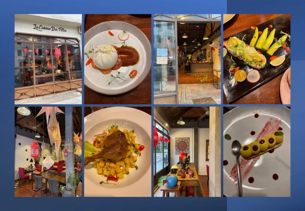こちらでもブッラータチーズ、カンポットで取れるクラブとアボカドの前菜、鴨のコンフィを。プチパンも美味しかったかな。ラズベリーのデザートは、かわいいけど甘い。