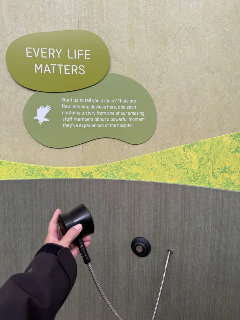 耳に当てると、動物園ではたらく職員さんの